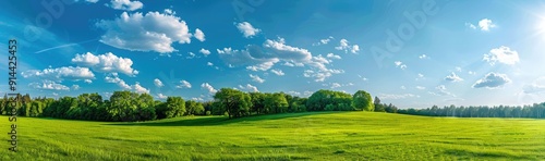 © Bluenana, Obraz premium Green Field Under a Blue Sky