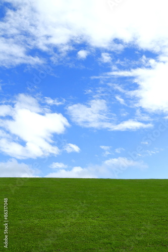 © Nishihama, Fototapeta premium 青空と草原 Green field under blue sky