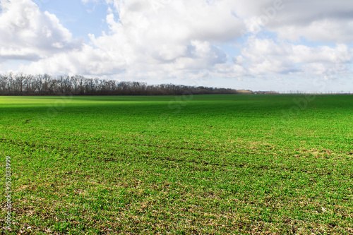 © artverau, Obraz premium Green field with a cloudy sky