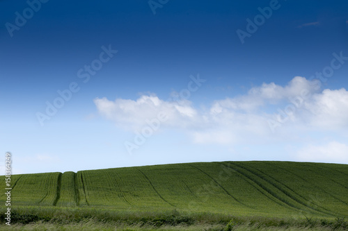 © Reslow, Obraz premium Green field with blue cloudy sky