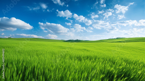 Naklejka premium Green field with blue sky