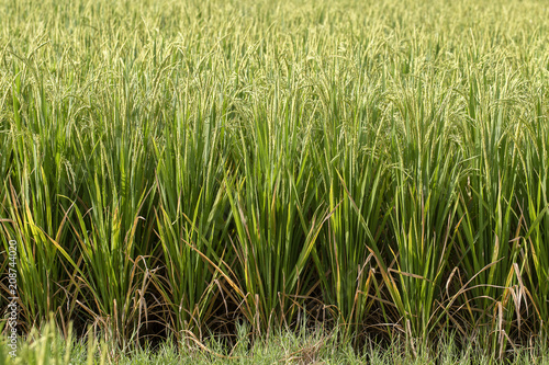 Obraz premium Green field with rice stalks in island Bali, Indonesia. Close up