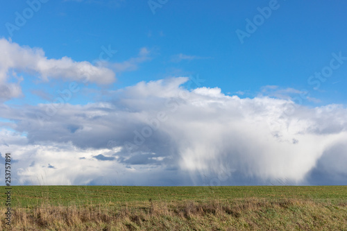 Obraz premium Green fields and blue skies over hessen in Germany