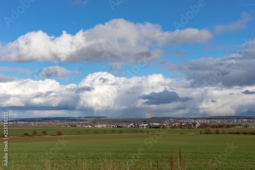 Obraz premium Green fields and blue skies over hessen in Germany