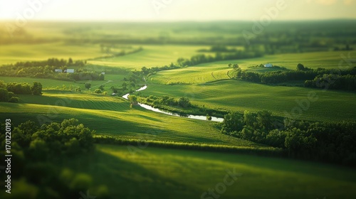 © heru, Obraz premium Green fields river landscape
