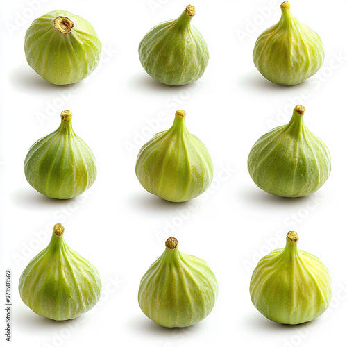 © Lilimanatasa, Obraz premium Green figs, different angles, white background