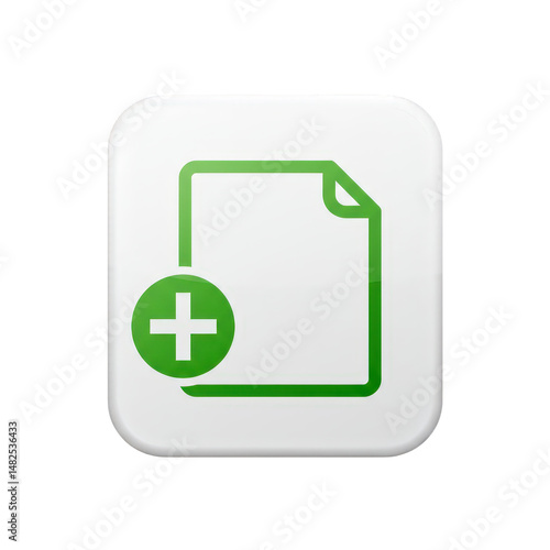 © X Land , Obraz premium Green file icon with plus sign on a white rounded square shape on isolated background