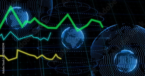 © vectorfusionart, Fototapeta premium Green financial graph over digital image of Earth and data points