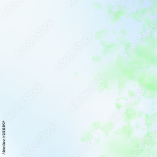 © Begin Again, Fototapeta premium Green flower petals falling down. Exquisite romant