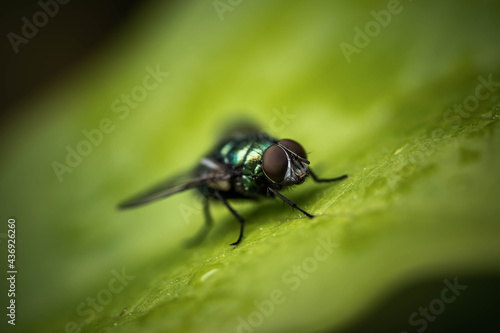 © Alex, Fototapeta premium green fly on leaf, selective focus, incredible wildlife