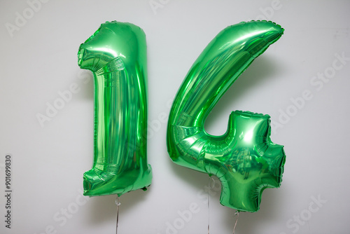 © Анастасія Жукова, Fototapeta premium green foil number 14 balloons