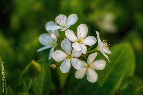 Fototapeta premium Green foliage adorned with white blossoms