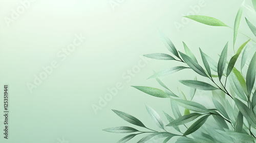 © Lailatul, Fototapeta premium Green foliage adorns a light backdrop, ideal for natural or organic design, conveying freshness and tranquility