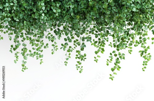 © Artologyeai, Fototapeta premium Green foliage cascading down a white wall