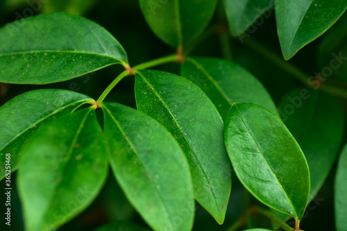 Fototapeta premium Green foliage nature background trees in summer forest with dangling branches covered with fresh leaves. Vibrant colors environment ecology concept