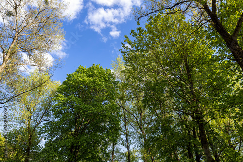 Obraz premium green foliage of maple trees in the spring season