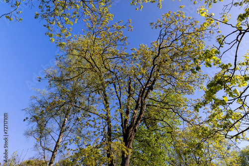 Fototapeta premium green foliage on a maple tree in spring bloom