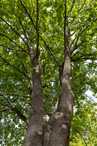 © rsooll, Naklejka premium green foliage on deciduous trees in the park in the autumn season at the beginning of the fall, deciduous trees with colorful foliage at the beginning of the autumn season
