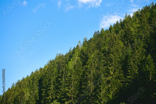 Obraz premium Green forest and blue sky.