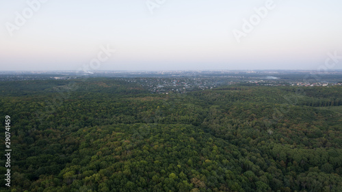 © sergeytay, Fototapeta premium Green forest and many trees from a height.