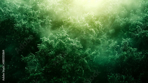 © aviavlad, Fototapeta premium Green forest canopy in morning mist