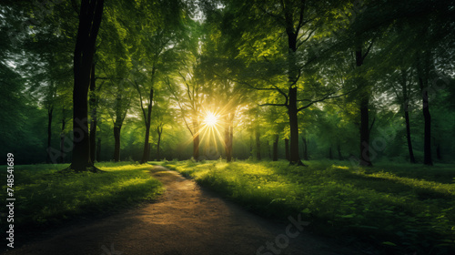 © Pakhnyushchyy, Fototapeta premium Green forest environment. Beautiful Forest
