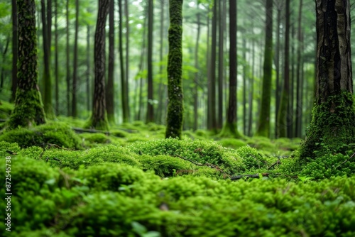 Obraz premium Green Forest Floor with Moss Covered Trees
