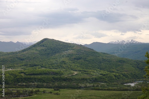 Naklejka premium Green forest in mountains