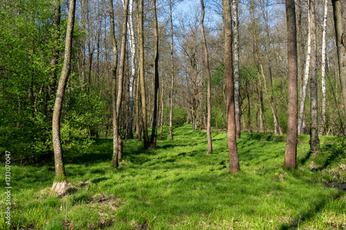 © aerrant, Fototapeta premium Green forest in spring, freshness. Orzesze, Poland.