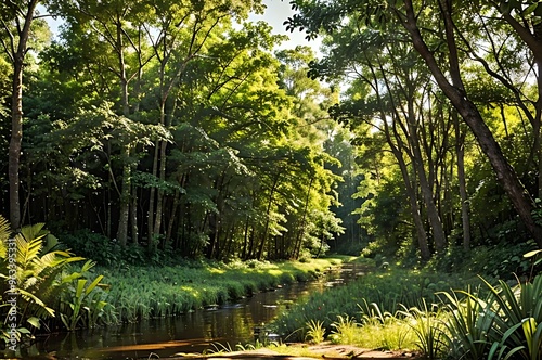 Obraz premium green forest in the morning
