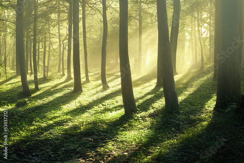 © eyetronic, Obraz premium Green forest landscape in sunlight