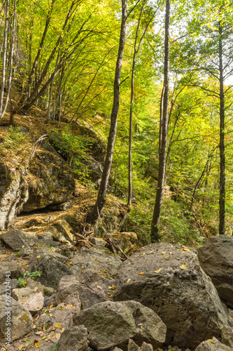 © Stoyan Haytov, Obraz premium Green forest near town of Devin, Rhodope Mountains, Bulgaria