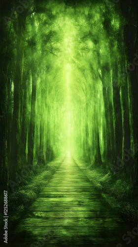 Obraz premium Green forest path, light ahead, nature background