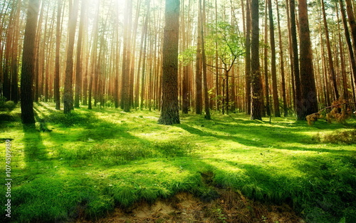 © JULIE, Fototapeta premium green forest stretching to welcome the bright sunlight
