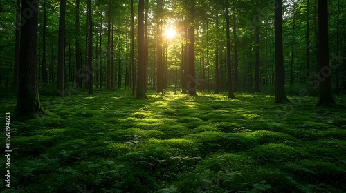 © Labonita, Fototapeta premium Green forest sunlight landscape nature high resolution images
