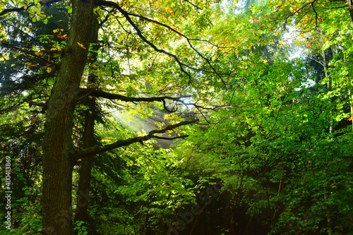 © meryll, Obraz premium Green forest tree branches foliage nature