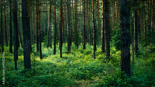 © KALEYA, Obraz premium Green Forest Trees Background Photo