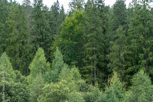 © Real_life, Obraz premium Green forest trees. Nature background.