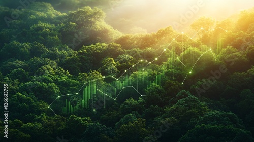 © gundo850, Obraz premium Green Forest with Data Visualization Charting Growth and Progress