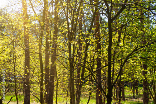 Fototapeta premium Green forest with green trees, green forest landscape