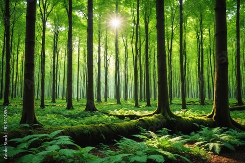 Obraz premium Green forest with ray of light
