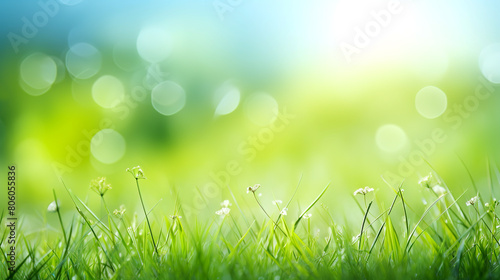 © Volodymyr, Obraz premium Green fresh grass on blurred background, summer background