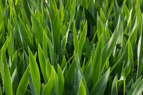 Obraz premium Green fresh spring plant leaves background ecology nature protection concept