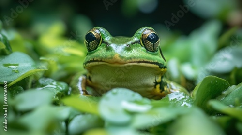 © creativeideh, Naklejka premium Green Frog Close-Up