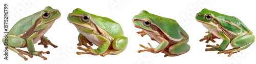© ImagineWorld, Naklejka premium Green Frog Collection Displayed on Clear White Background for Nature Photography