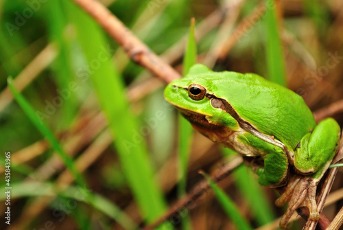 © Mihai, Naklejka premium Green frog hiding in the leaves