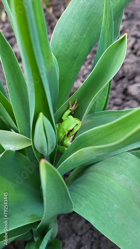 © Юлія Голодрига, Obraz premium Green frog in a flower