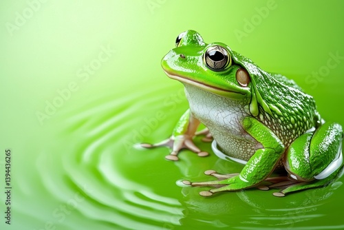 © Chokii.Ns, Obraz premium Green Frog in a Serene Green Pond, Generative AI.