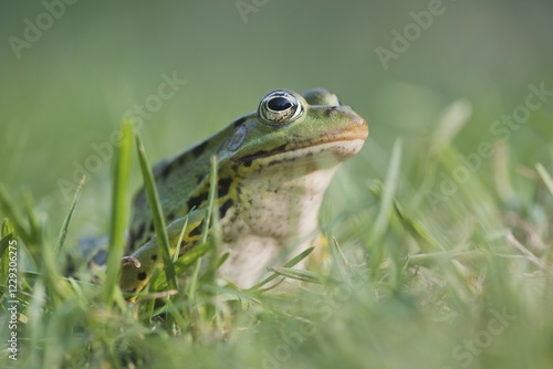 © Erhard Nerger/imageBROKER, Fototapeta premium Green frog (Rana esculenta), sits in the grass, Lower Saxony, Germany, Europe