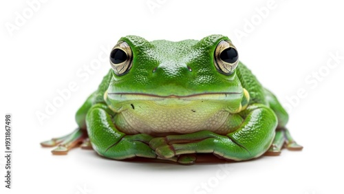 © Wisang71, Obraz premium Green frog sitting on white.